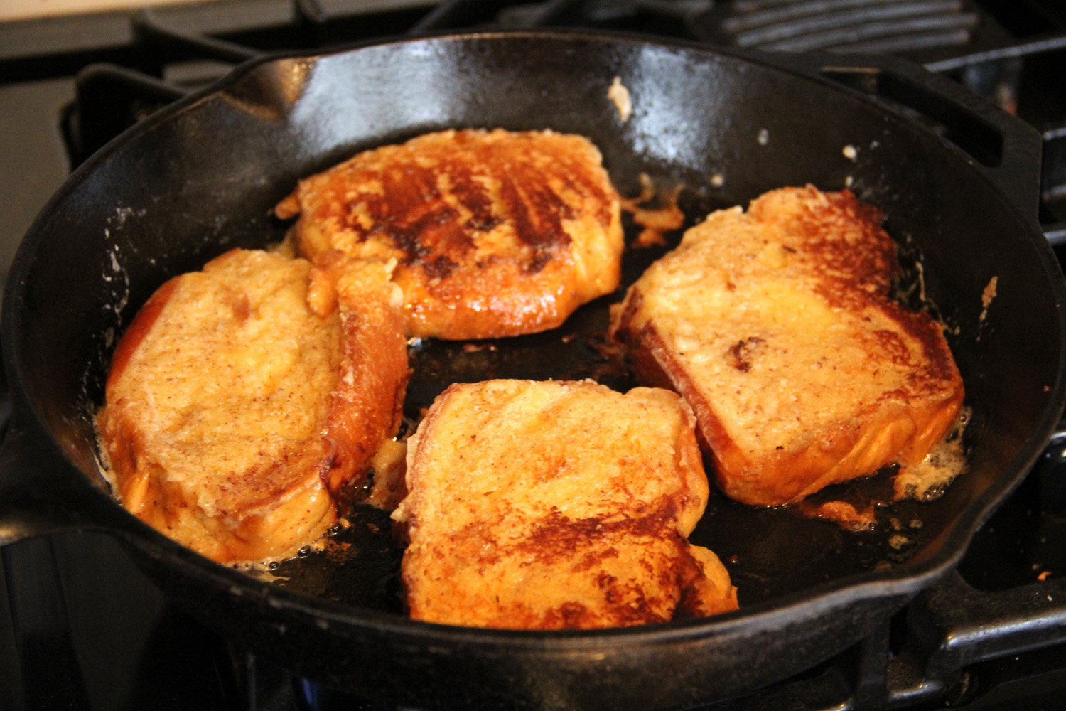 I used coconut oil spray and butter to get a nice crust on the toast. Cook over medium heat until brown and golden like so: