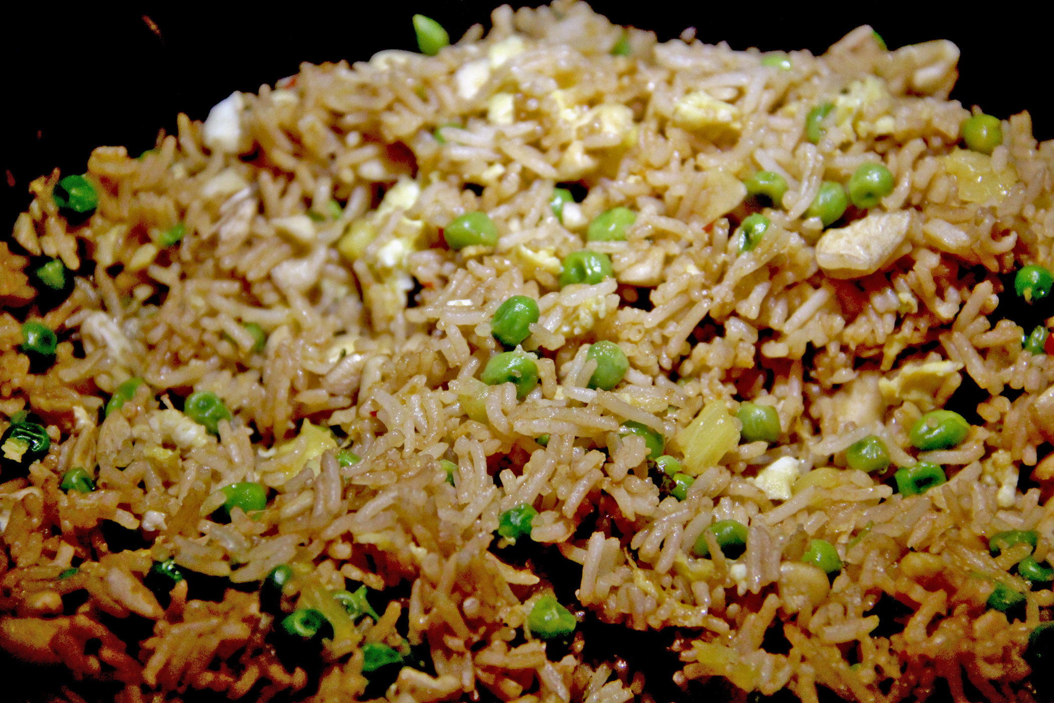 I served it up with my tasty pineapple cashew rice – a mix of jasmine rice, sesame oil, soy sauce, onion, garlic, ginger, peas, fresh pineapple chunks, scrambled egg and cashews.